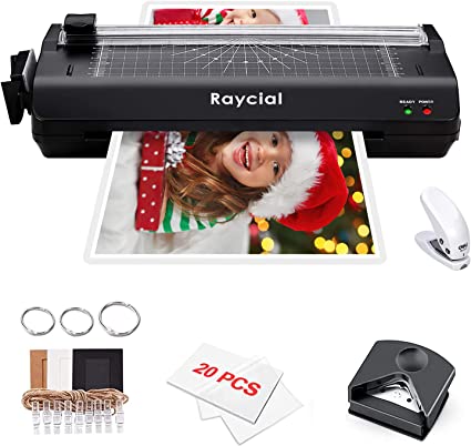 7 in 1 thermal laminating device: the complete set includes 1 laminator, 1 corner rounder, 1 hole punch, 25 laminating pouches, 3 picture frames and 3 book rings. A corner marker protects your skin from cuts. With a single hole punch, you can punch however you like. Additional 3 book rings are included in the package, help you create photo sets